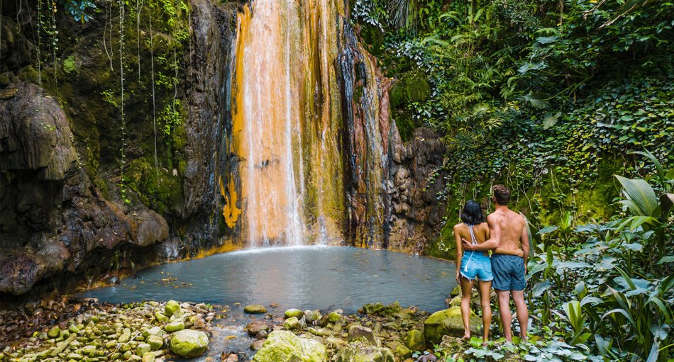 Auch am Boden entfaltet die Insel ihre besondere Magie. Abenteuerlustige Paare können in den Sulphur Springs von Soufrière in vulkanischen Schlammbädern entspannen, deren mineralreiche Wärme Körper und Geist in Einklang bringt. Versteckte Wasserfälle wie der Diamond Waterfall oder abgelegene Regenwaldpfade laden zu intimen Momenten fernab des Alltags ein – eine perfekte Mischung aus Natur, Abenteuer und Romantik.
