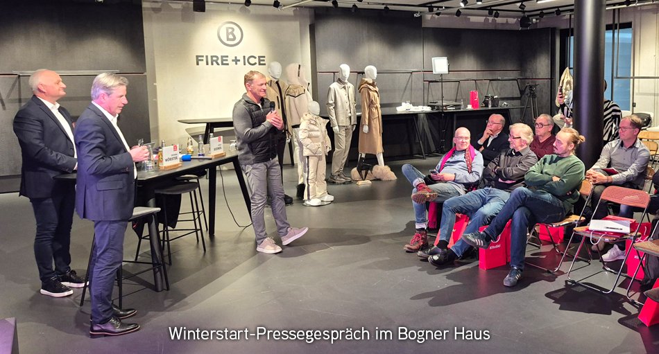 Zum zweiten Mal nach der Premiere im Vorjahr lud die Bergbahn AG Kitzbühel (KitzSki) zu ihrem Winterstart-Pressegespräch ins Bogner Haus in der Münchner Residenzstraße. KitzSki-Vorstandsdirektor Anton Bodner und sein Vorstandskollege Christian Wörister stellten dabei die Highlights der Wintersaison 2025/26 vor. Mit dabei waren Bogner-Geschäftsfüher Daniel Hiendlmeier („Wir freuen uns darauf, dass die Skisaison los geht“) und der Alpindirektor des DSV (Deutscher Skiverband) Wolfgang Maier.