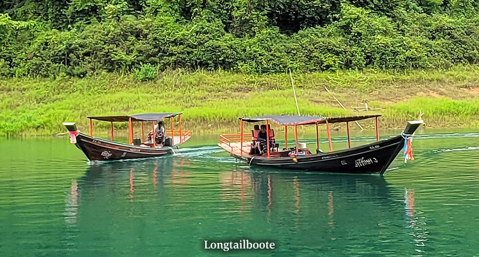 Es wäre nicht ROBINSON, wenn nicht auch Ausflüge auf dem Programm gestanden wären, wie etwa jener zum Khao Sok Nationalpark. Highlight ist dort zweifelsohne der Chiao-Lan-Stausee (1987 fertig gestellt, 5 Jahre Bauzeit), über den es mit Longtailbooten zunächst zum Mittagessen in das idyllische Phutawan Raft House ging (das Floßhaus besteht aus 32 schwimmenden Zimmern und einem Restaurant). Seitdem dort im Vorjahr der Sohn des thailändischen Königs übernachtete, wird dessen schwimmendes Zimmer wie ein „Heiligtum“ behandelt und nicht mehr vermietet. Es ist übrigens der einzig klimatisierte Raum in der gesamten Anlage.