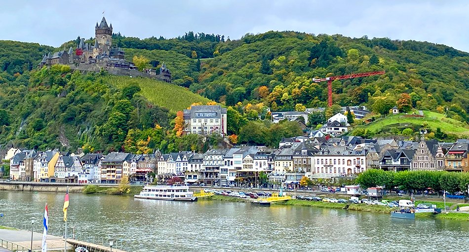Über Nacht ging es dann in die Mosel (dieser in Frankreich entspringende Fluss mündet bei Koblenz in den Rhein). Hier „Untermosel“ genannt, windet sie sich in eleganten Schleifen durch ein Tal voller Terrassenweinbergen, die zu den steilsten in Europa gehören. In der Stadt Cochem mit ihren verwinkelten Gassen, einer wehrhaften Stadtmauer und der stolz über der Landschaft thronenden Reichsburg stand wieder eine Stadtführung auf dem Programm. Zurück auf der MS Charles Dickens, spielte am Nachmittag das Sonnendeck seine Vorzüge aus, während die um diese Jahreszeit goldenen Weinberge vorbeizogen.
