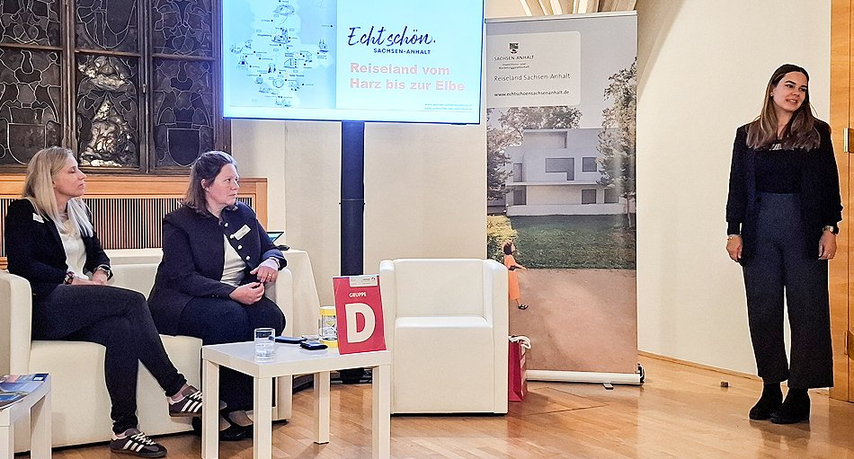 Die dritte Workshop-Station eröffnete Caren Bakker (Mecklenburg-Vorpommern) mit ihrer Präsentation. Zu den Neuigkeiten 2025/26 zählen unter die Neueröffnung des NABU-Erlebniszentrums KRANICHWELTEN und mehrere Hotel-Openings. Das Bundesland ist ab Wien bequem mit dem Flugzeug erreichbar, Eurotours bedient die Strecke nach Rostock-Laage von 9. Mai bis 12. September 2026 immer samstags. Thüringen feiert 2026 das Wagnerjahr, am Programm steht unter anderem die Inszenierung "Tannhäuser und der Sängerkrieg auf Wartburg". Anlässlich des 250. Geburtstags des Herzogs Georg II wird laut Carolina von Stojentin zudem ein Theaterjahr gefeiert. Komplettiert wurden die Vorträge im Gotischen Zimmer des Palais Niederösterreich von Katharina Scholz (Investitions- und Marketinggesellschaft Sachsen-Anhalt mbH). Die Präsentation stellte unter anderem den Nationalpark Harz und das UNESCO Biosphärenreservat Mittelelbe vor. Zum Outdoor-Angebot zählen unter anderem 18 überregionale Radrouten, Wanderwege und diverse Möglichkeiten zum Klettern oder Mountainbiken.