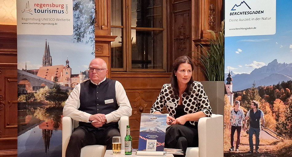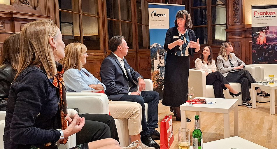 Doch nun zum eigentlichen Kern der Veranstaltung, den Präsentationen in Form von Workshop-Stationen. Die Teilnehmenden wurden auf 4 Gruppen aufgeteilt, T.A.I. besuchte als erstes die Station von Bayern Tourismus, Tourismusverband Franken e.V., Regensburg Tourismus GmbH und dem Zweckverband Bergerlebnis Berchtesgaden. Jaqueline Schmid und Selina Damm (Bayern Tourismus) stellten die Vorzüge des flächenmäßig größten Bundeslandes vor, zu denen neben kulturellen Highlights auch viele Outdoor-Aktivitäten gehören. Auf der Travel Trade Seite www.traveltrade.bayern finden Interessierte zudem verschiedene Sales Tools und die Möglichkeit zur Newsletter-Anmeldung. Angelika Schäffer vom Tourismusverband Franken hob unter anderem die höchste Brauerei-Dichte in Europa hervor. Die Region verfügt außerdem über fünf UNESCO-Welterbestätten. Als nächstes stand ein Vortrag von Otto Aufleger (Regensburg Tourismus GmbH) an der Reihe. Die Altstadt ist ebenso UNESCO-Welterbe wie der Donaulimes, zu den kulturellen Highlights zählt unter anderem das Programm "Unendliche Weiten" im Theater Regensburg. Stefanie Nowak vom Zweckverband Bergerlebnis Berchtesgaden brachte abschließend das Angebot der Region näher, von Österreich ist die Stadt leicht und schnell erreichbar. Zu den Attraktionen zählt unter anderem ein Salzbergwerk, das im Rahmen von Führungen besucht werden kann.
