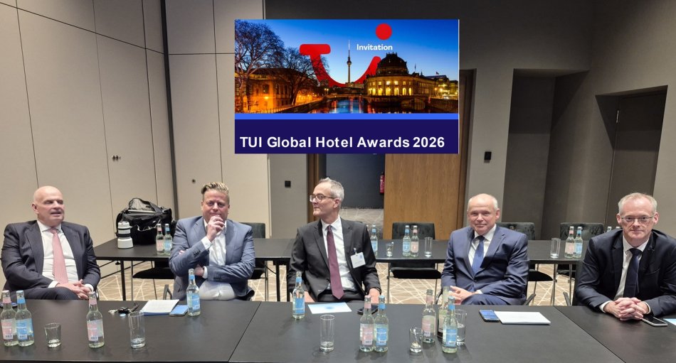 Das Mediengespräch vor der „TUI Global Awards 2026“-Verleihung am Montag vor der ITB Berlin mit TUI-Chef Sebastian Ebel (2.v.r.) stand ganz im Zeichen der kriegerischen Auseinandersetzung der USA und Israels gegen den Iran.