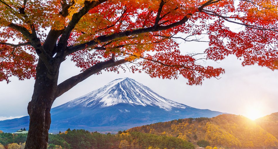 Blick auf den Berg Fuji zur Ahornsaison im Herbst (Foto: © tawatchai07)